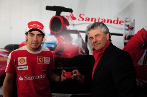 Fernando Alonso recibió la primera tarjeta Ferrari en el Gran Premio de Montmeló de manos de Enrique García Candelas, director general y responsable de Banca Comercial España. Al recibirla, Alonso dijo: “Esta tarjeta será la mejor forma de llevar Ferrari en tu bolsillo”. Felipe Massa también recibió la tarjeta. García Candelas señaló: “Ésta es la primera tarjeta de crédito en el mundo que lleva el sello de producto oficial Ferrari y hemos querido que los clientes del Santander en España sean también los primeros que puedan tenerla. Sin duda, esta tarjeta será algo más que un medio de pago: será un signo de identificación con un equipo ganador, el que forman las marcas Santander y Ferrari”.