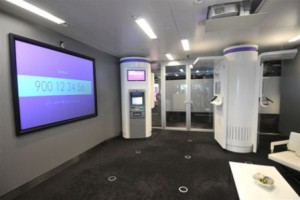 Al entrar en la oficina el cliente accede al área de bienvenida que, de forma interactiva y ágil,  le orienta sobre las funciones e itinerario por las diferentes zonas. El área de autoservicio incorpora innovadoras soluciones con tecnología NFC (Near Field Communication), que permiten al cliente realizar diversas operaciones con sólo acercar su teléfono móvil al cajero. Asimismo, este cajero ofrece promociones personalizadas mediante aplicaciones de marketing móvil.