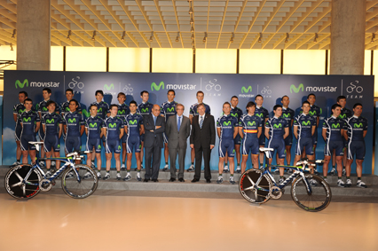 Telefónica ha presentado hoy oficialmente Movistar Team, el conjunto ciclista que toma el relevo de la escuadra con más éxitos en la historia del ciclismo español. Se trata del proyecto deportivo más importante de Telefónica actualmente y abre una nueva etapa en la estrategia de patrocinio de la compañía, que vincula su marca, Movistar, a este equipo, al que acompañará en las principales competiciones ciclistas del mundo. El acto ha contado con la presencia del Presidente de la compañía, César Alierta, el Secretario General Técnico de Presidencia de Telefónica, Luis Abril, y el director del equipo, Eusebio Unzué, y se ha celebrado en el Auditorio de la sede de Telefónica en Madrid, Distrito C.